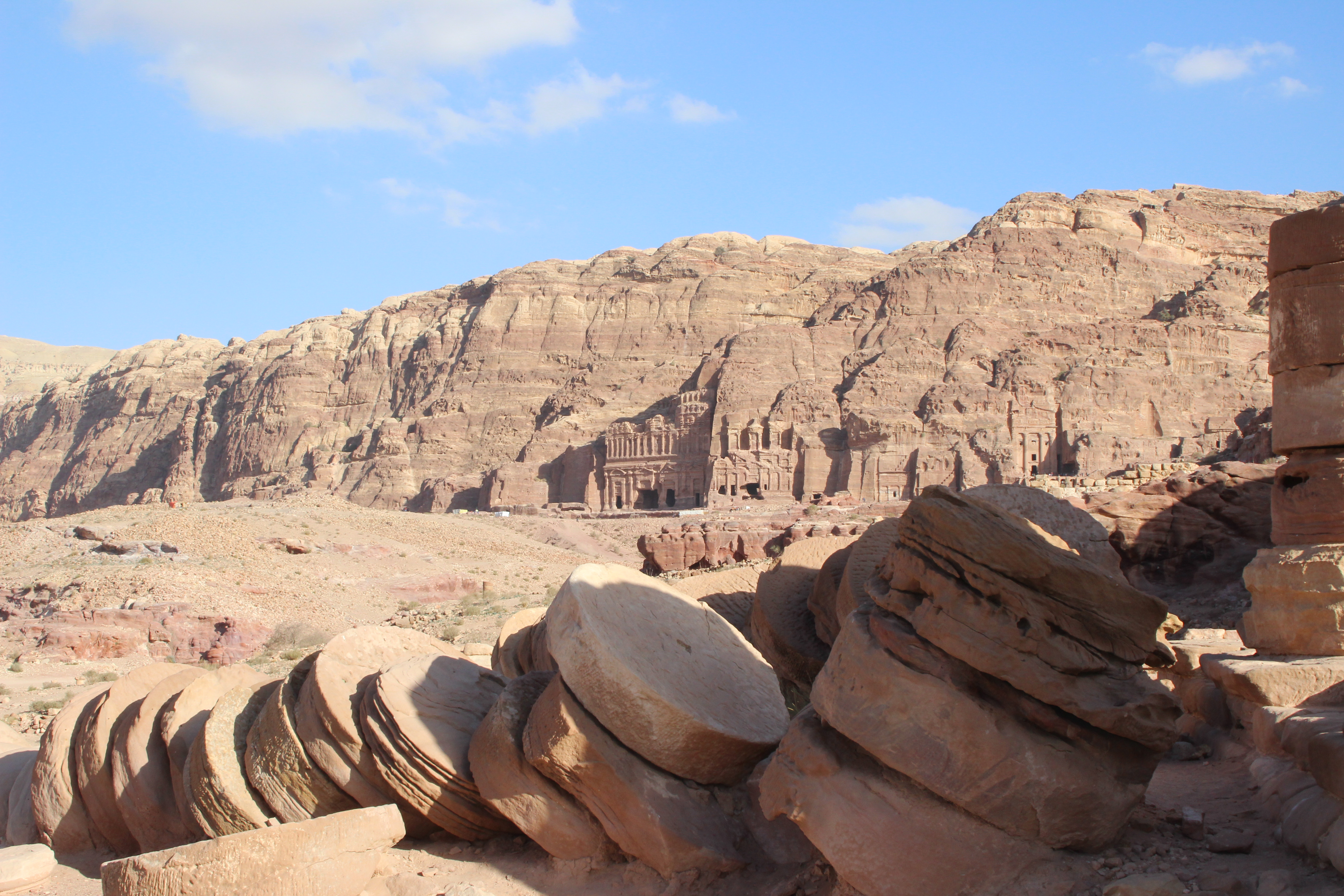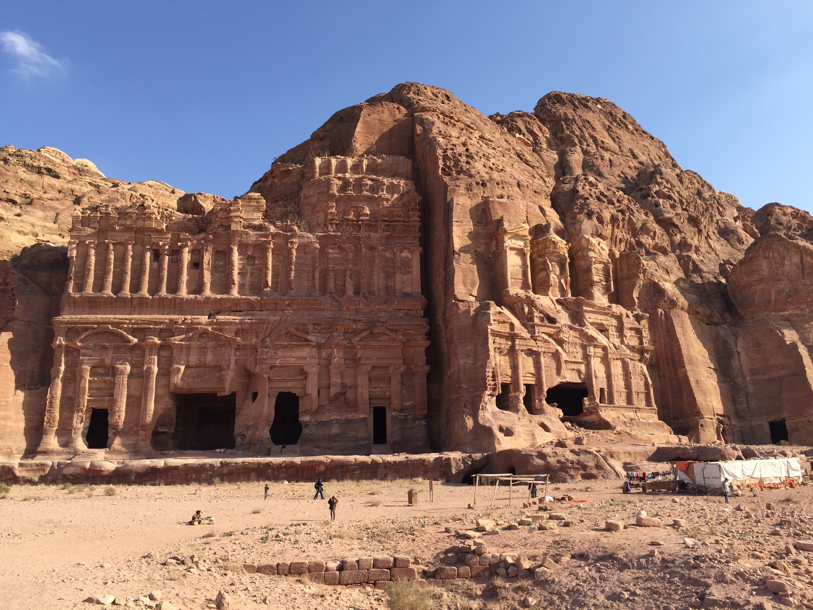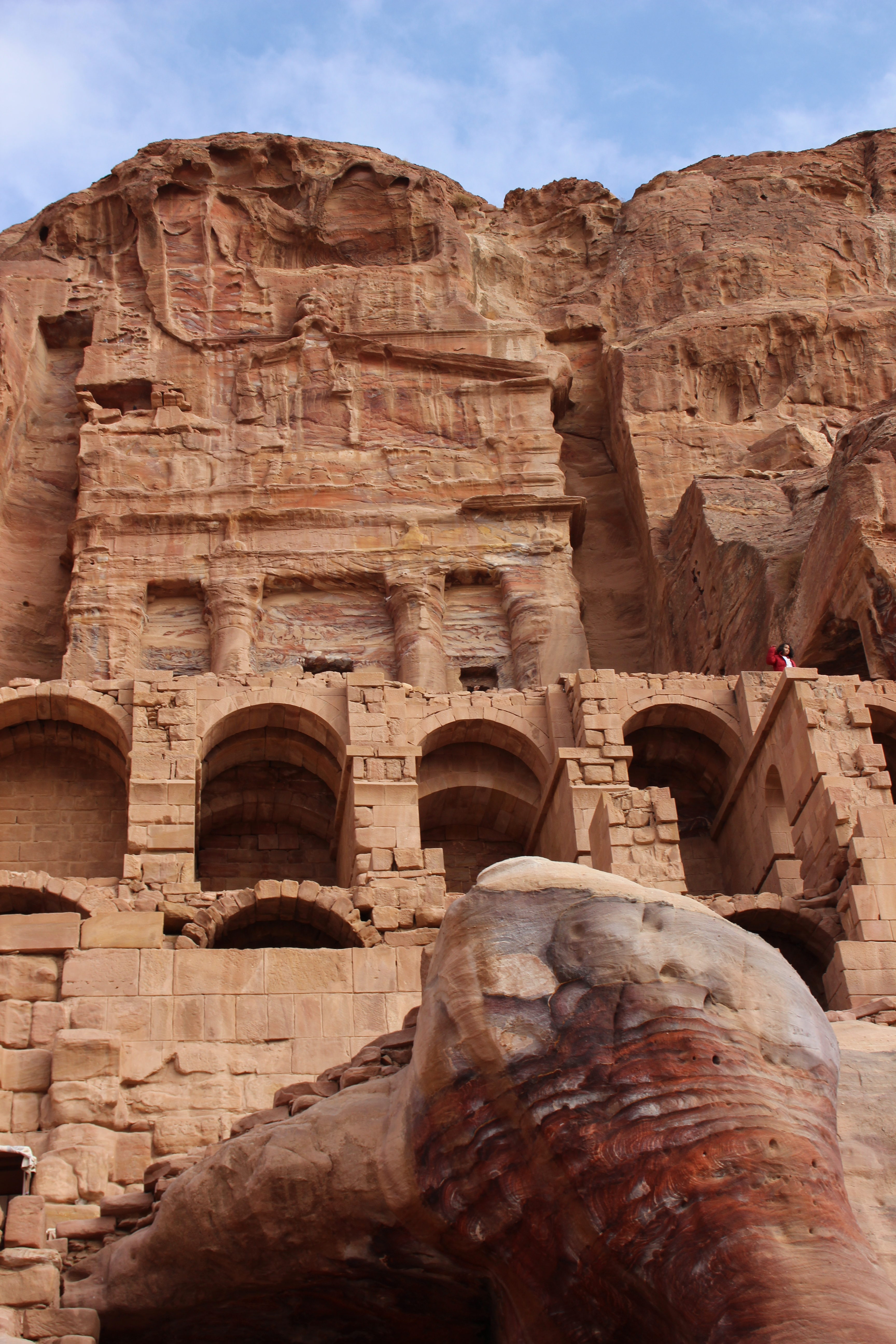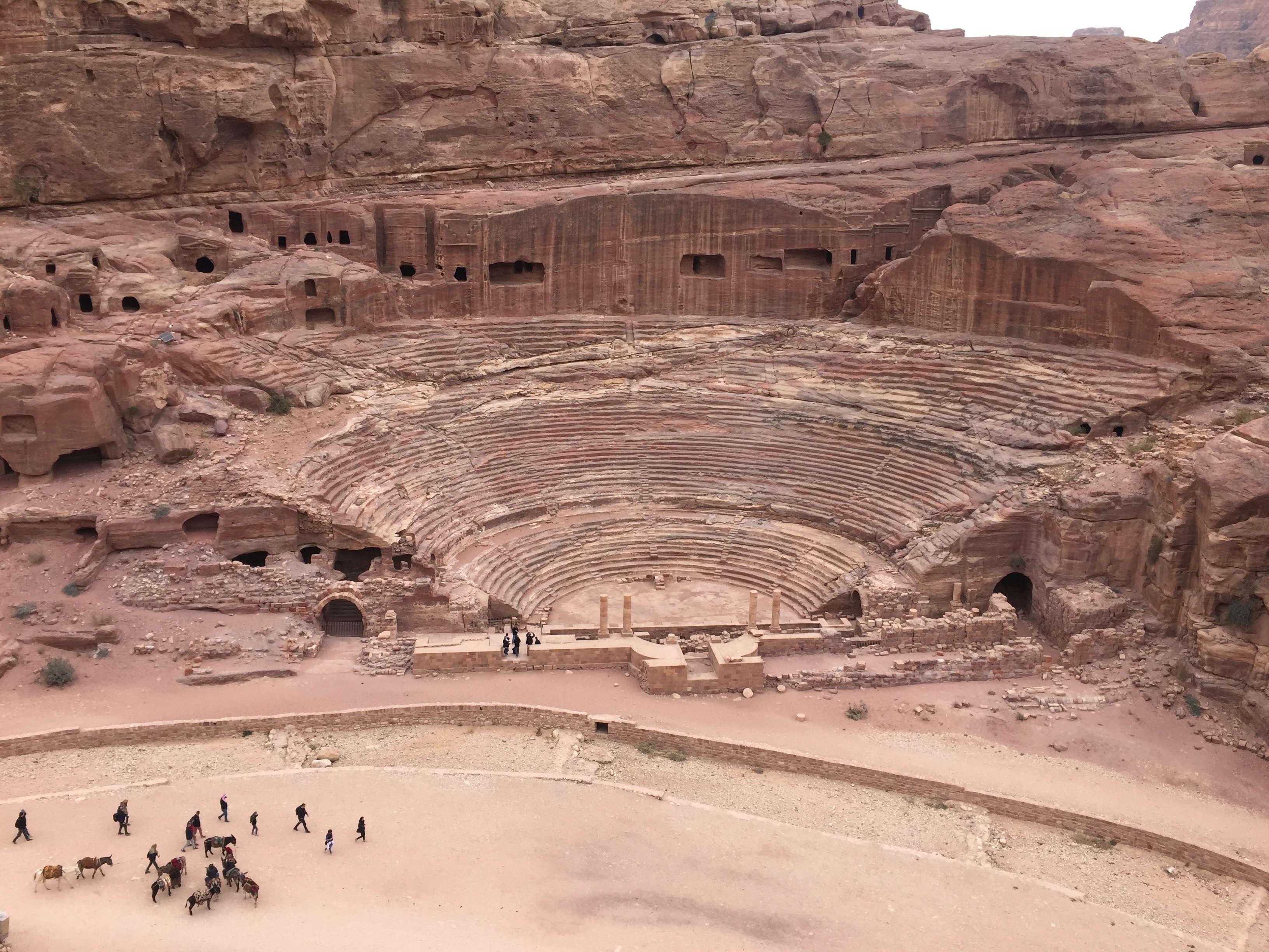 Following the sight of the wonderful Treasury, we walked to the Street of Facades. This is a row of monumental Nabataean tombs carved in the southern cliff where the Siq begins to widen gradually as it reaches into an open area. Right after, we admired the Theater from above. Carved into the side of the mountain at the foot of the High Place of Sacrifice, this theater could once accommodate 4000 spectators.