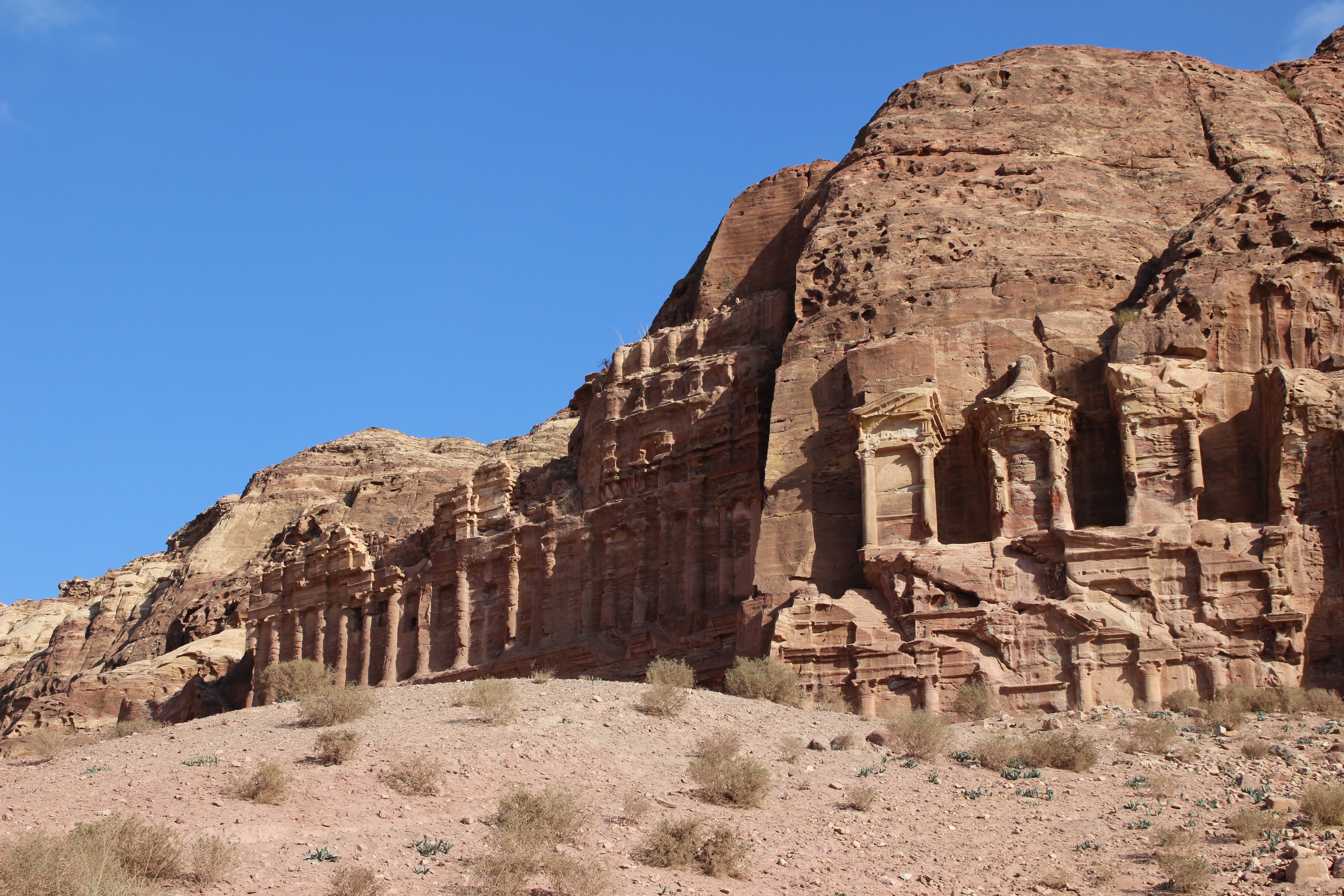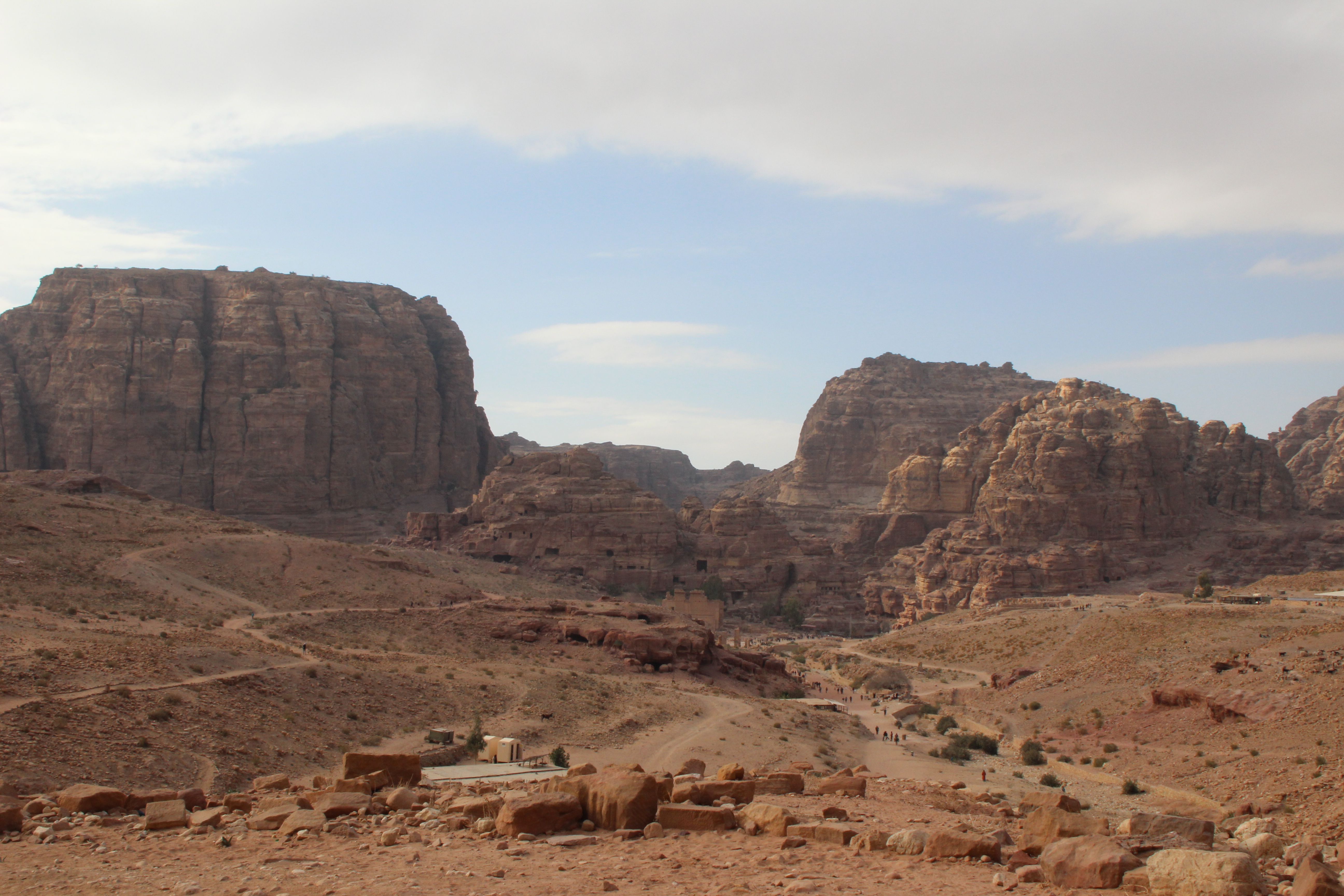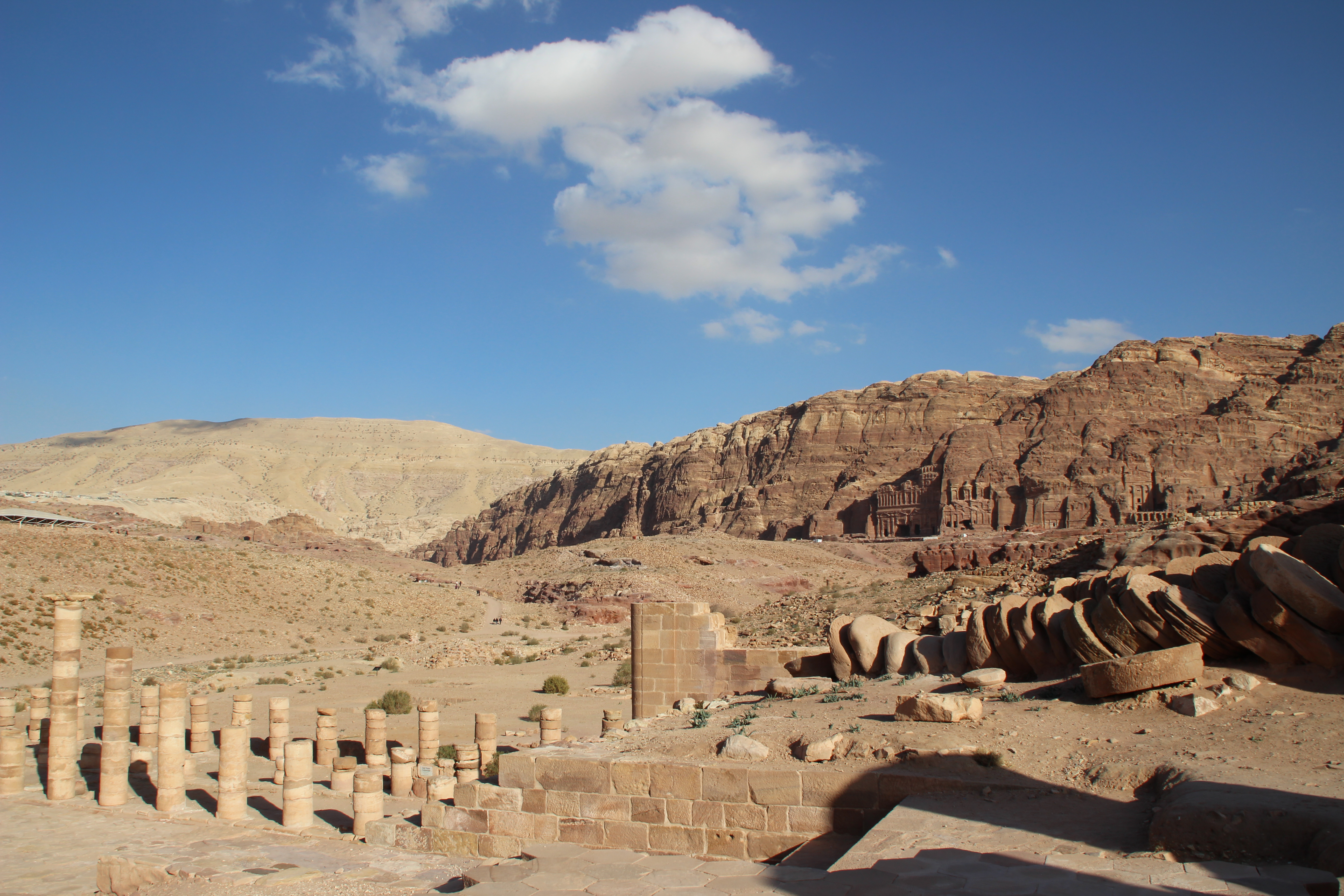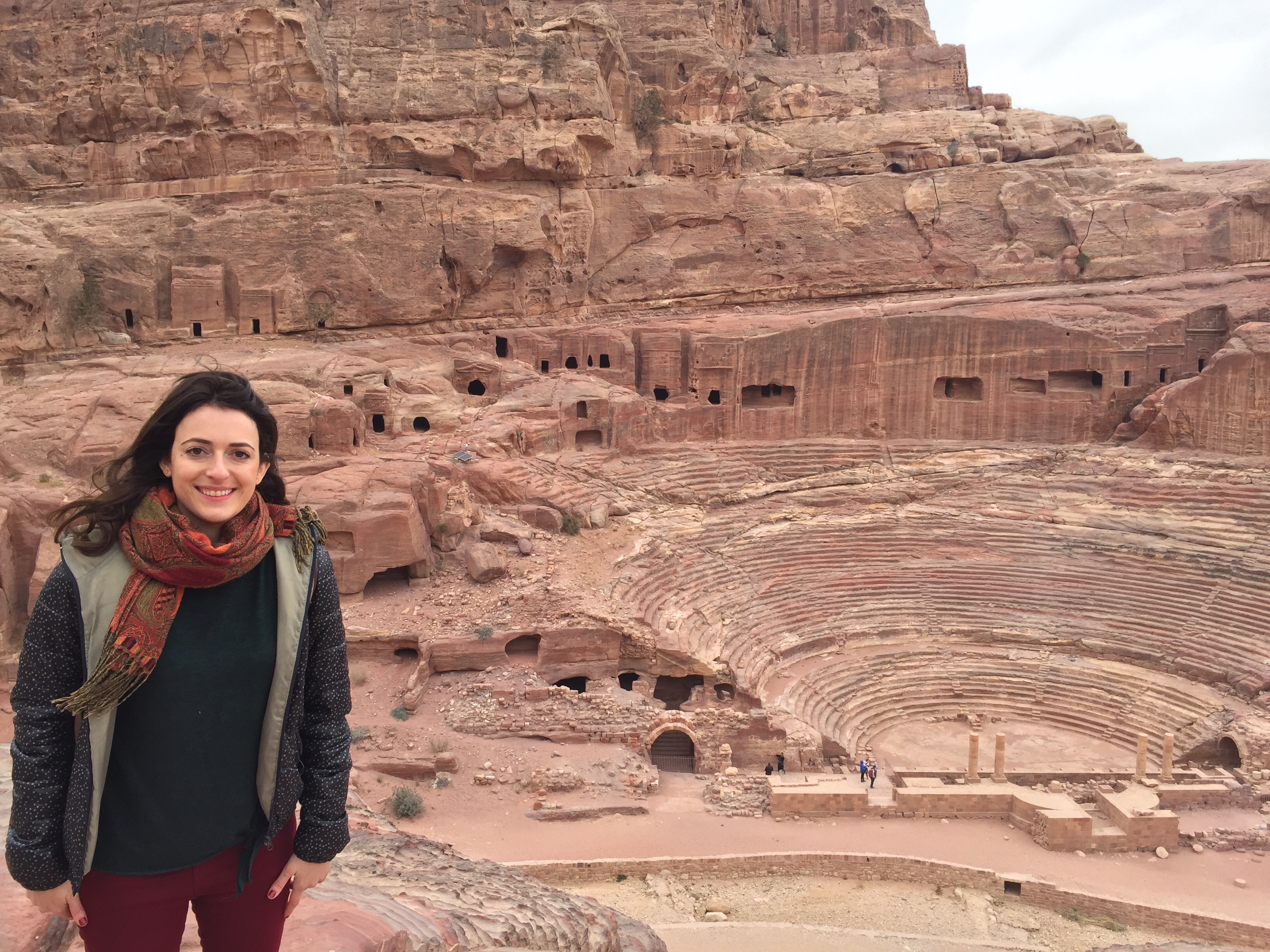 Following the sight of the wonderful Treasury, we walked to the Street of Facades. This is a row of monumental Nabataean tombs carved in the southern cliff where the Siq begins to widen gradually as it reaches into an open area. Right after, we admired the Theater from above. Carved into the side of the mountain at the foot of the High Place of Sacrifice, this theater could once accommodate 4000 spectators.
