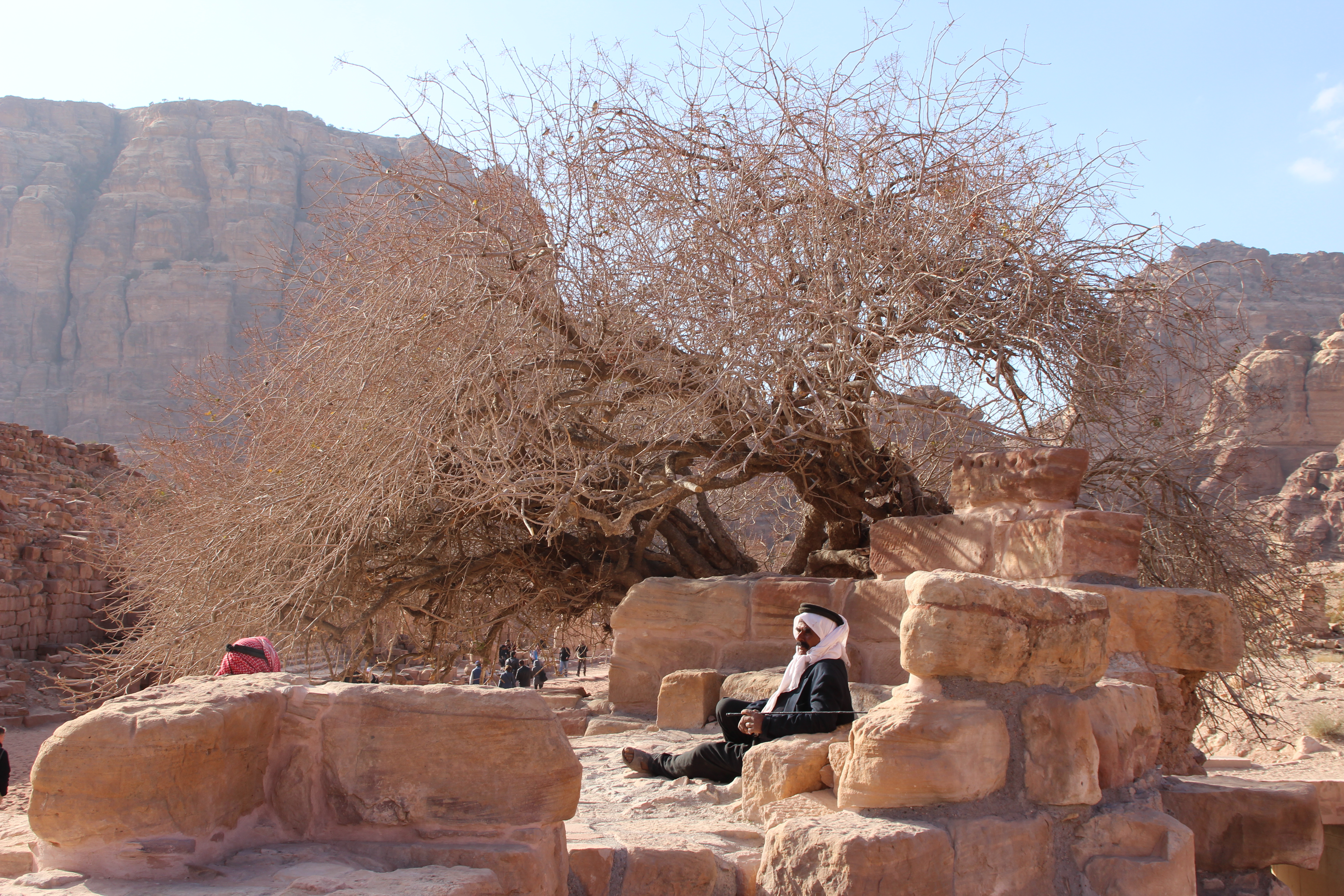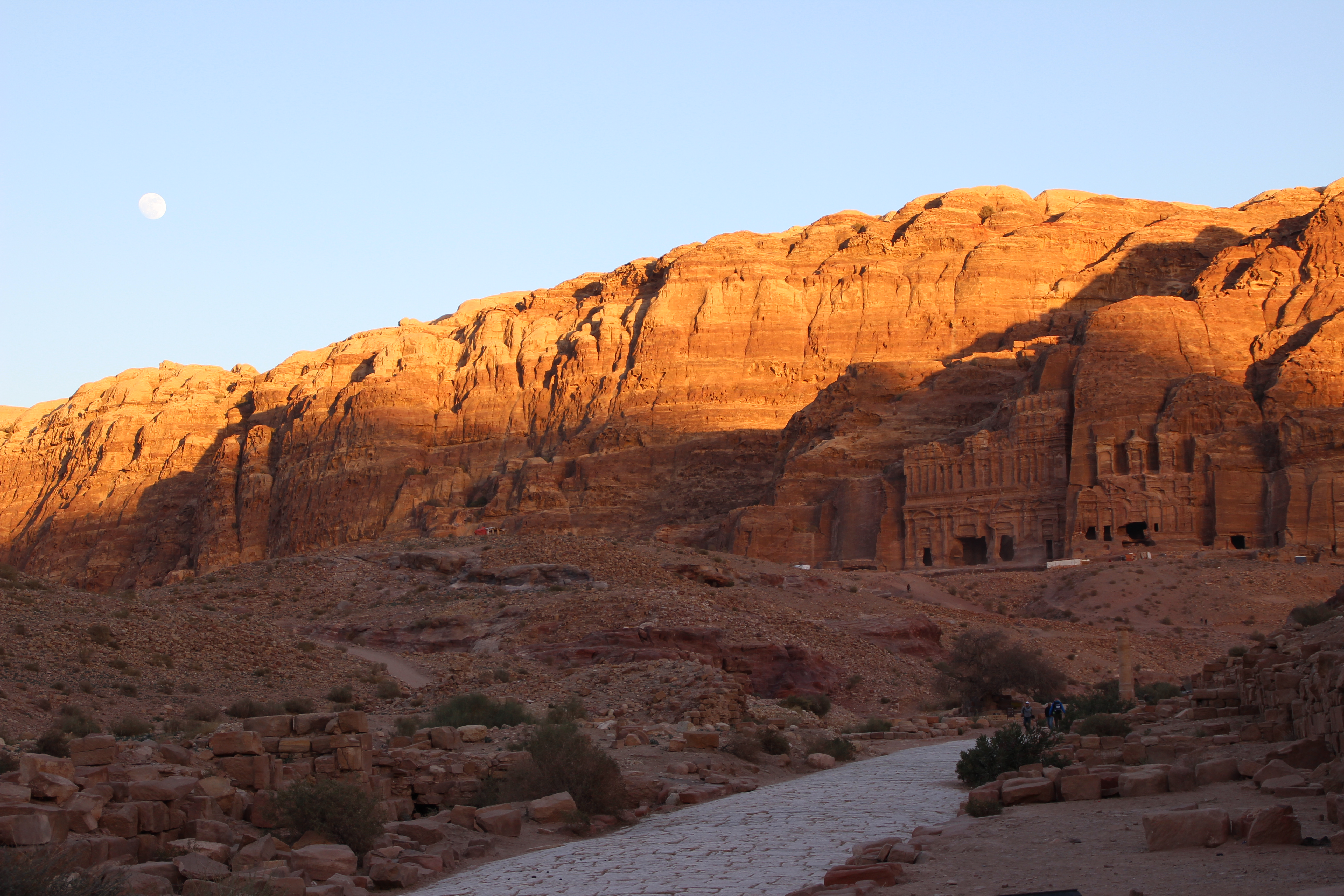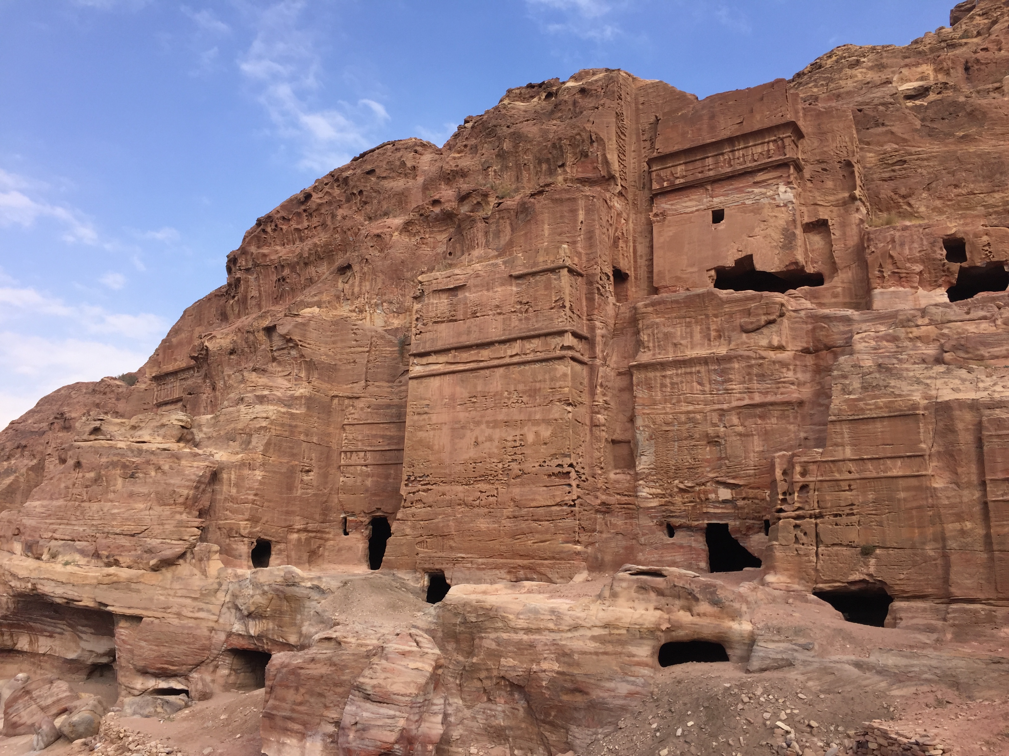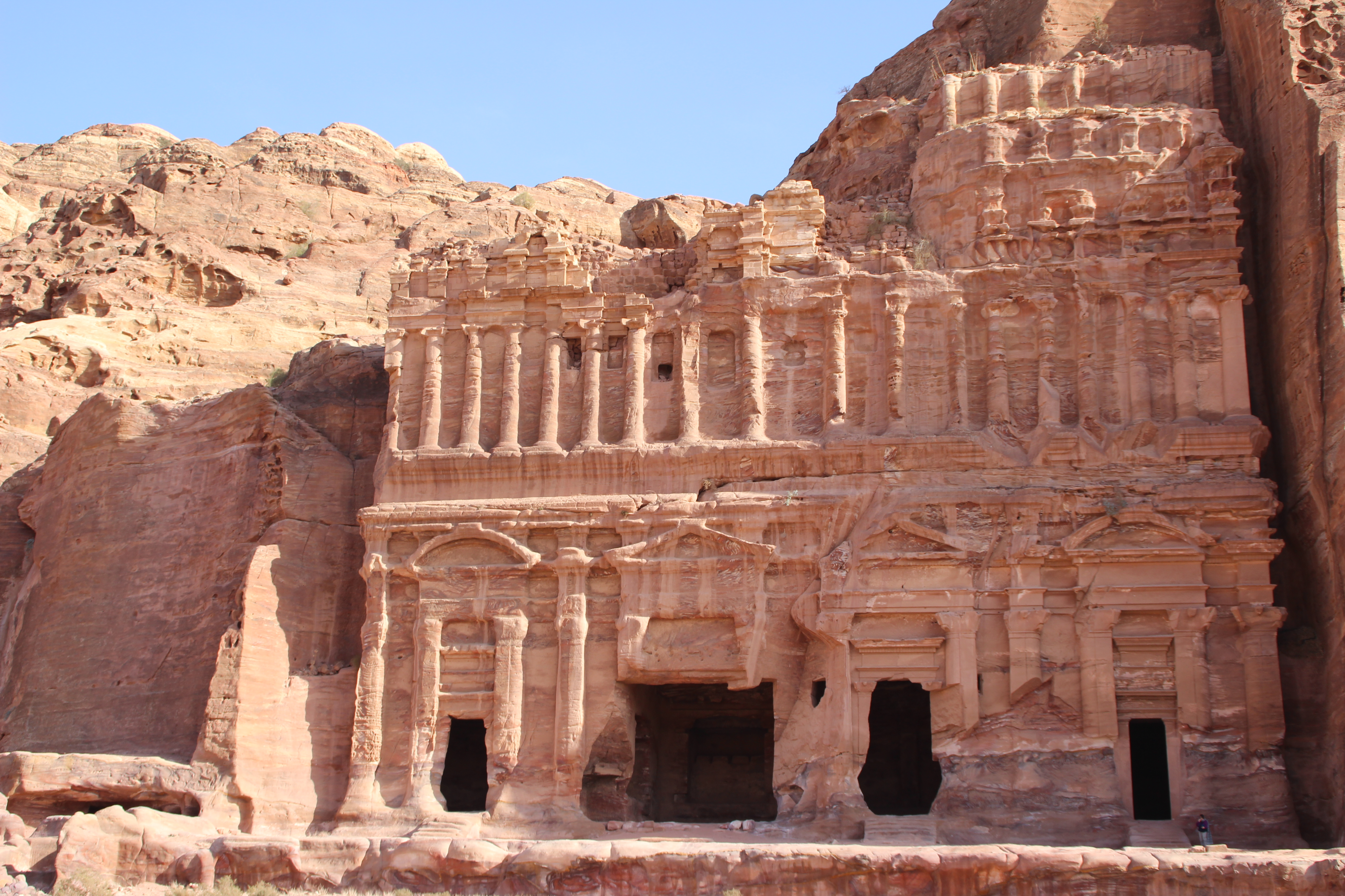 Following the sight of the wonderful Treasury, we walked to the Street of Facades. This is a row of monumental Nabataean tombs carved in the southern cliff where the Siq begins to widen gradually as it reaches into an open area. Right after, we admired the Theater from above. Carved into the side of the mountain at the foot of the High Place of Sacrifice, this theater could once accommodate 4000 spectators.