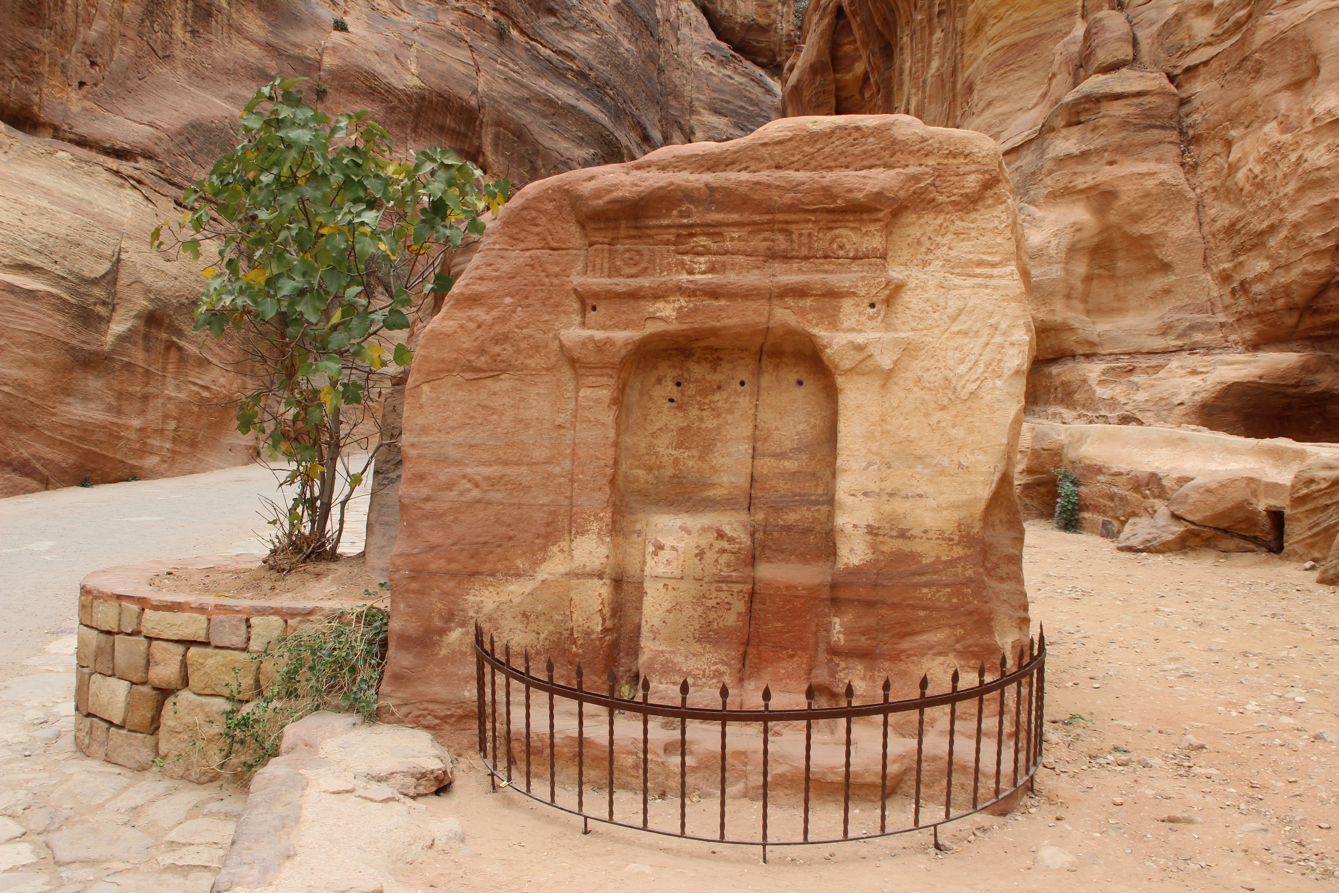 We started our visit early on at the Visitor Center. Our first stop was ‘Bab Al Siq’ (gateway to the ‘siq’). Three massive squared monuments carved out of the rock (called ‘Djinn’) will welcome you. We then came across the Obelisk Tomb, which was carved by the Nabataeans in the 1st century AD. Above the tomb are four pyramids (‘nafesh’) as well as a niche with a statue in bas-relief that is a symbolic representation of the five people buried there. Below it is the Triclinium, which was a banqueting hall. In the opposing cliff face there is a double inscription in Nabataean and Greek that refers to a burial monument.